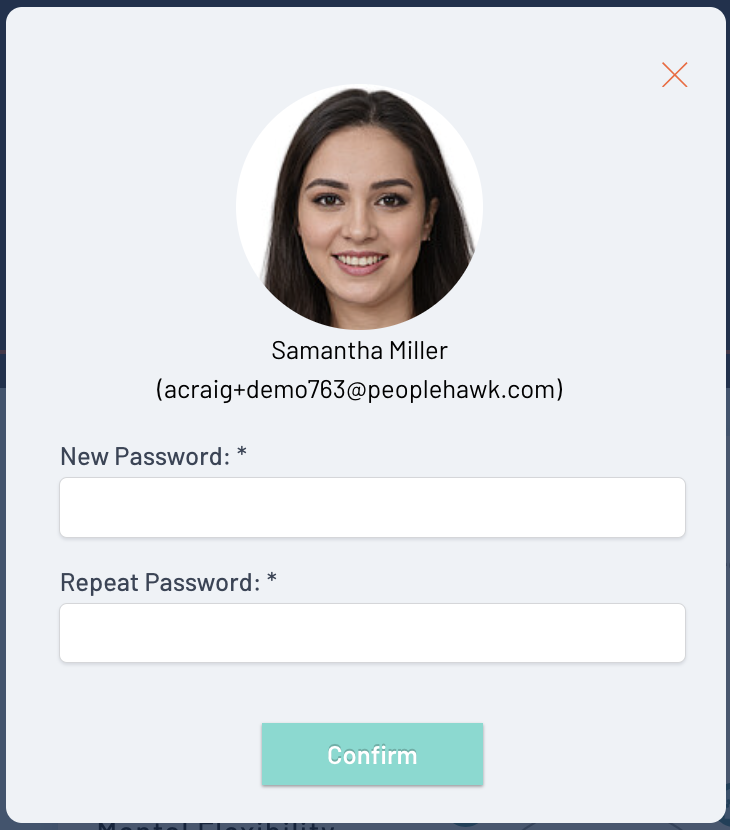 Enter a new secure password (twice) and click “Confirm” to update their account.